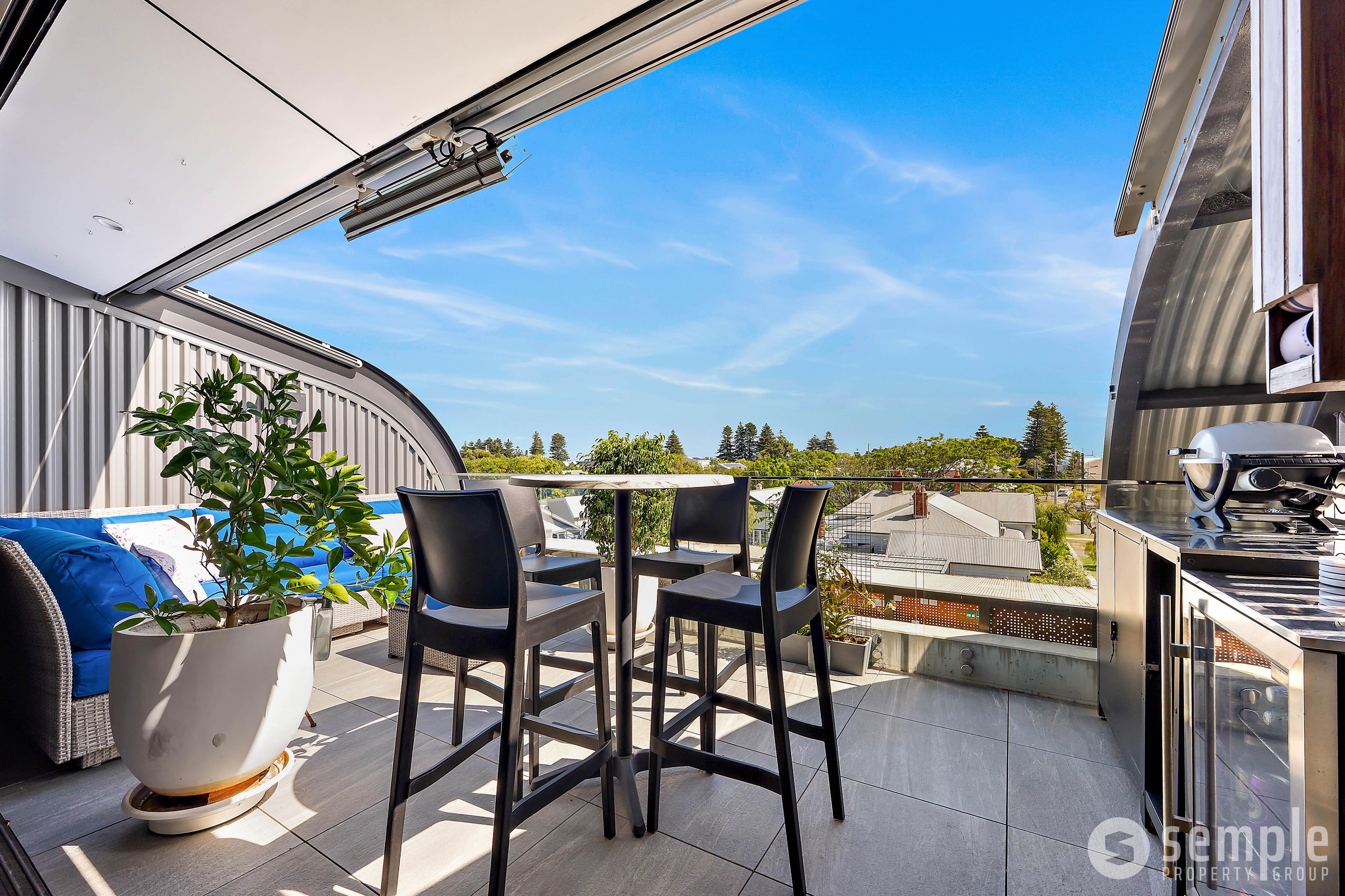 – Stunning balcony with remote shade screen and built-in heater – ideal for year-round entertaining