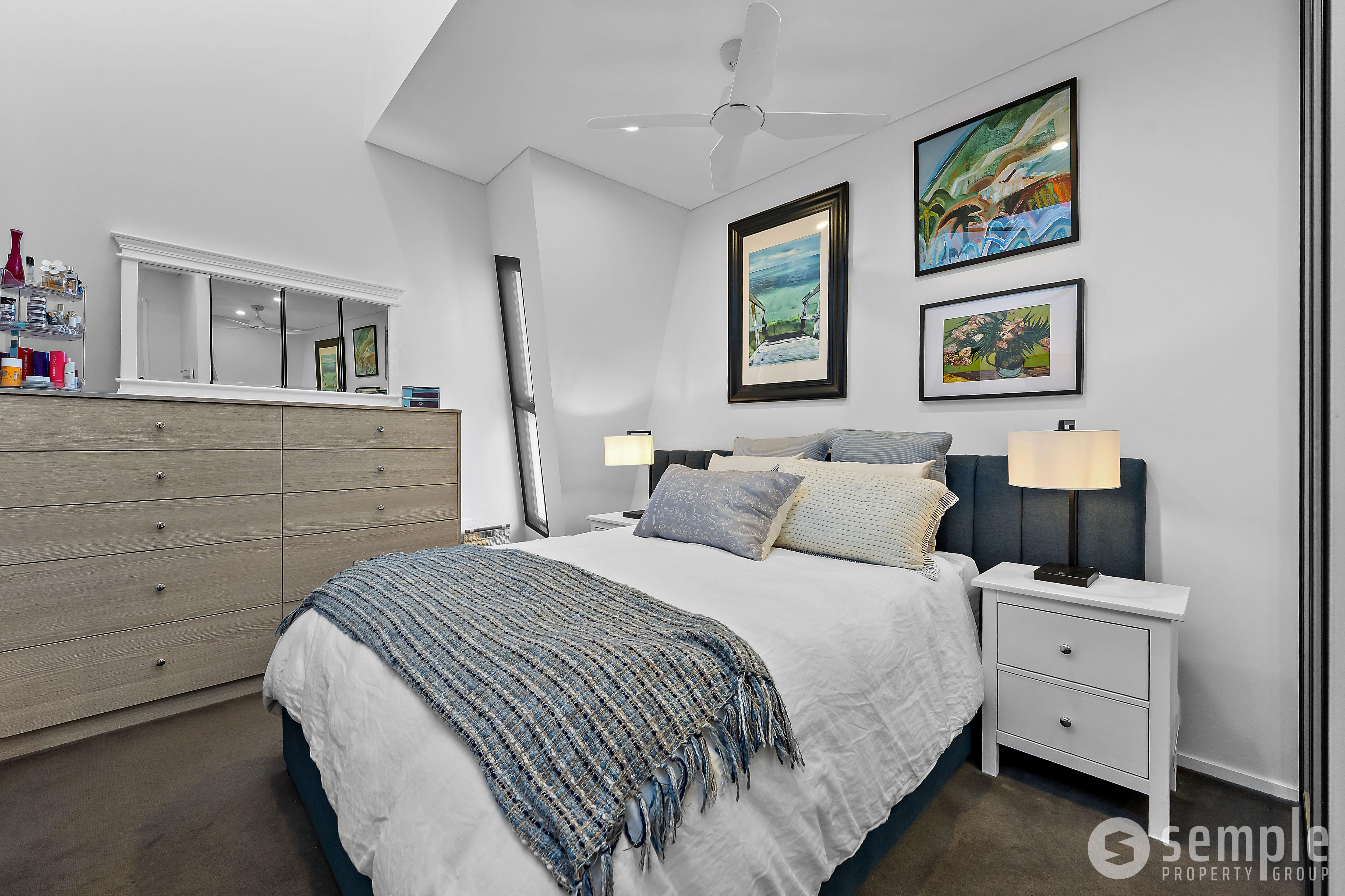 – Spacious master bedroom with ceiling fan, mirrored built-in robe, TV point and semi-ensuite access