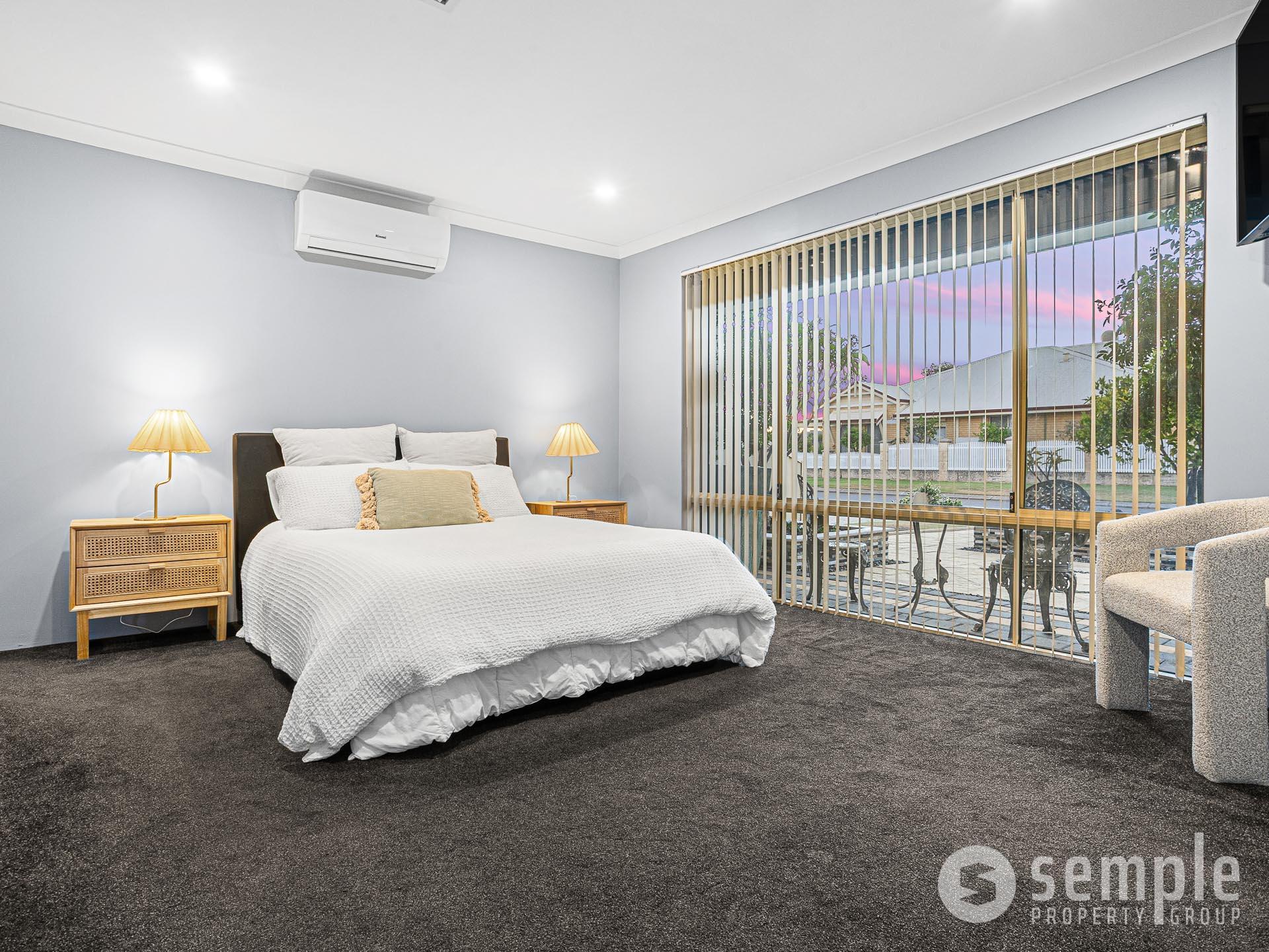 • King-sized master bedroom with walk-in wardrobe and split system air conditioning