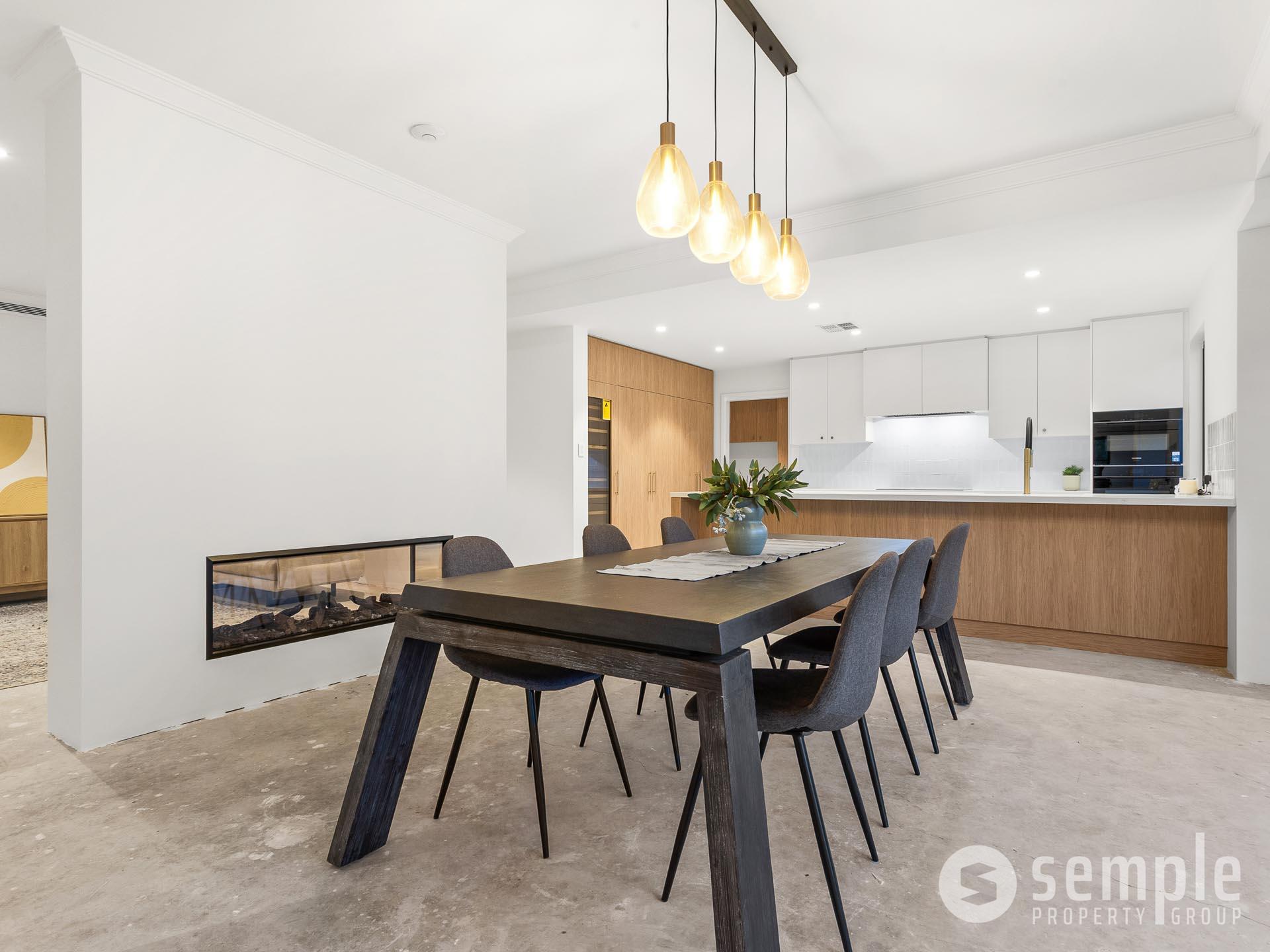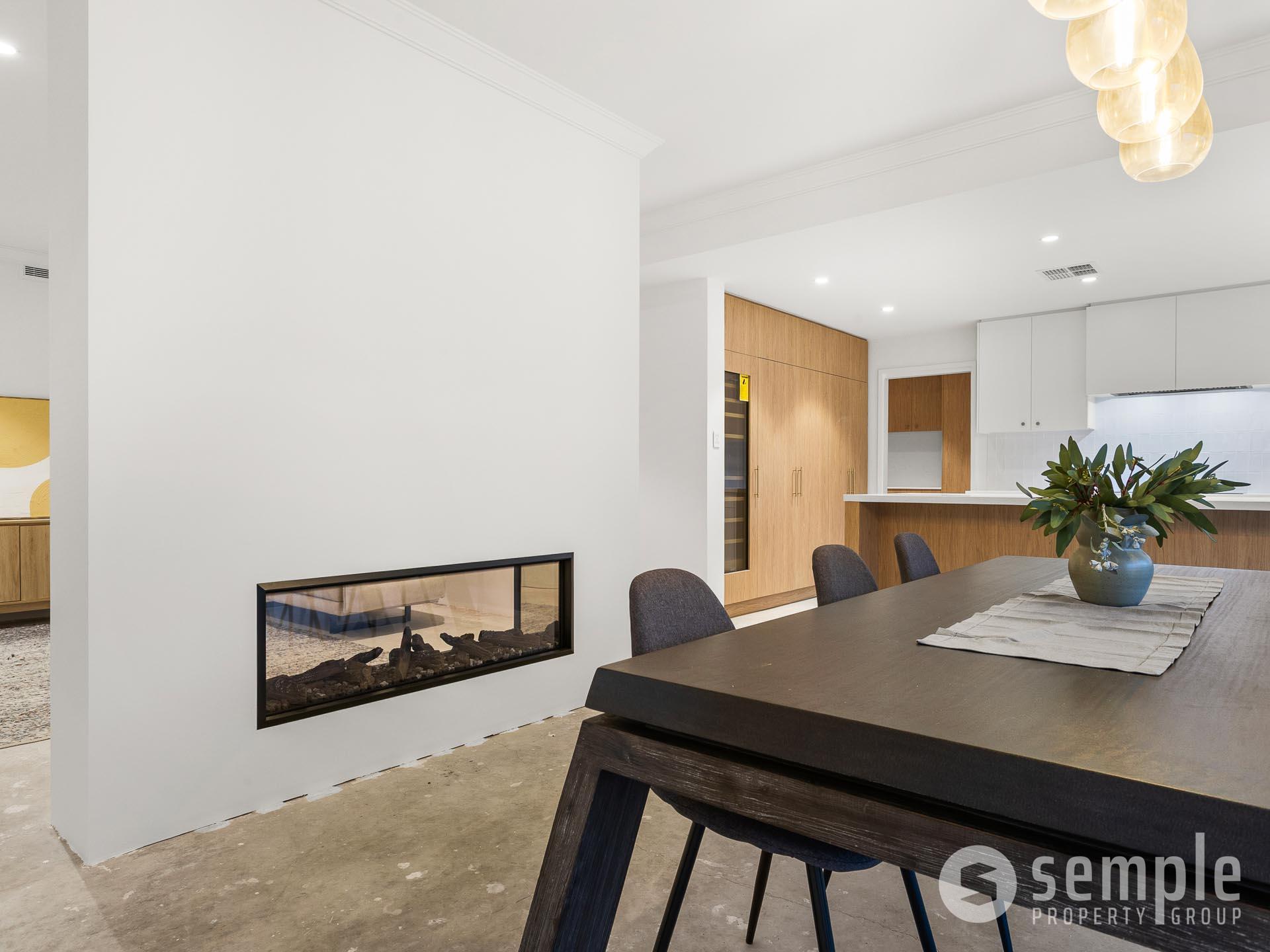 • Spacious open-plan living and dining area with feature double-sided gas fireplace in the main living zone