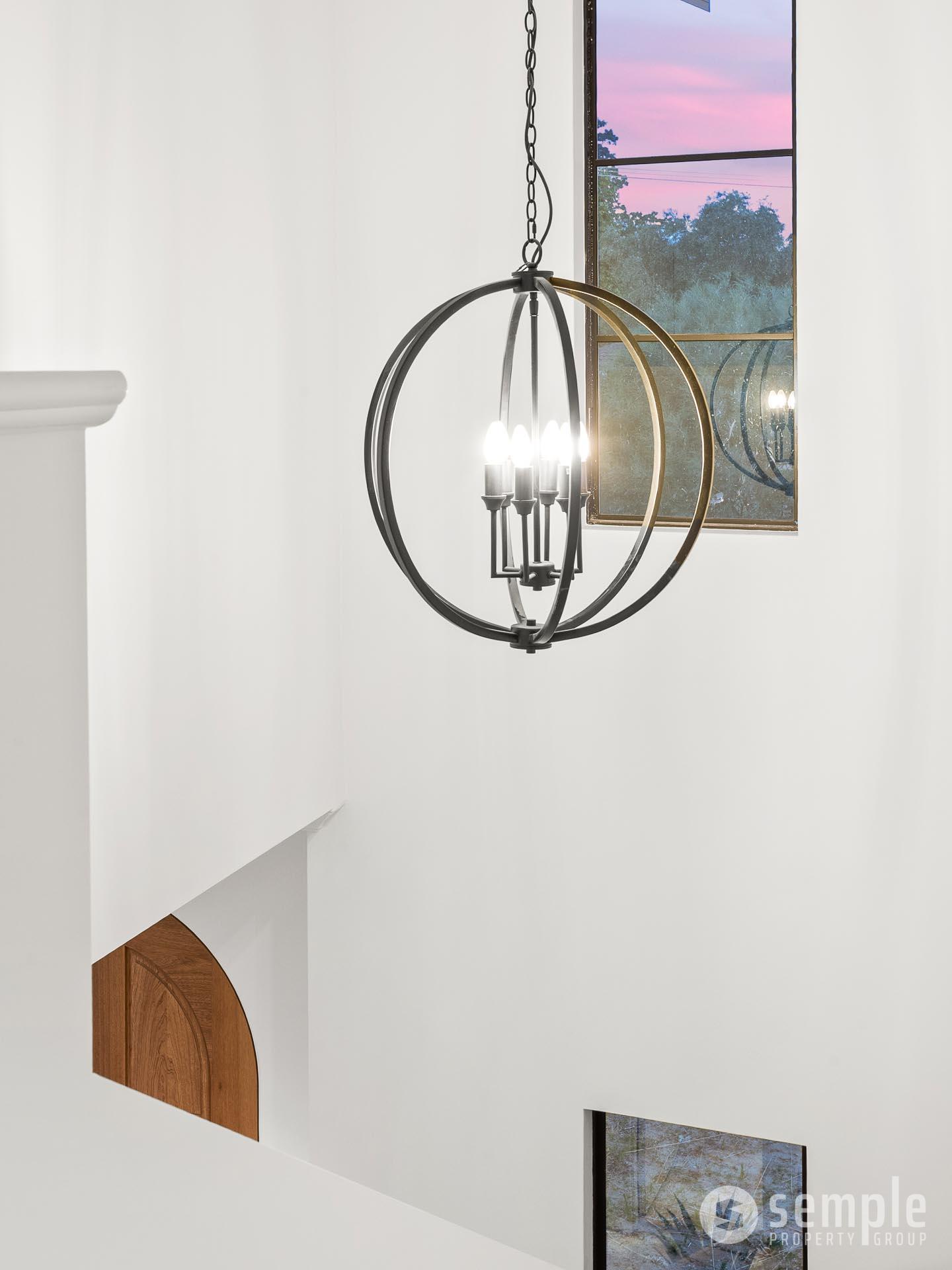 • Stunning double-height void above the staircase with chandelier and stair lights