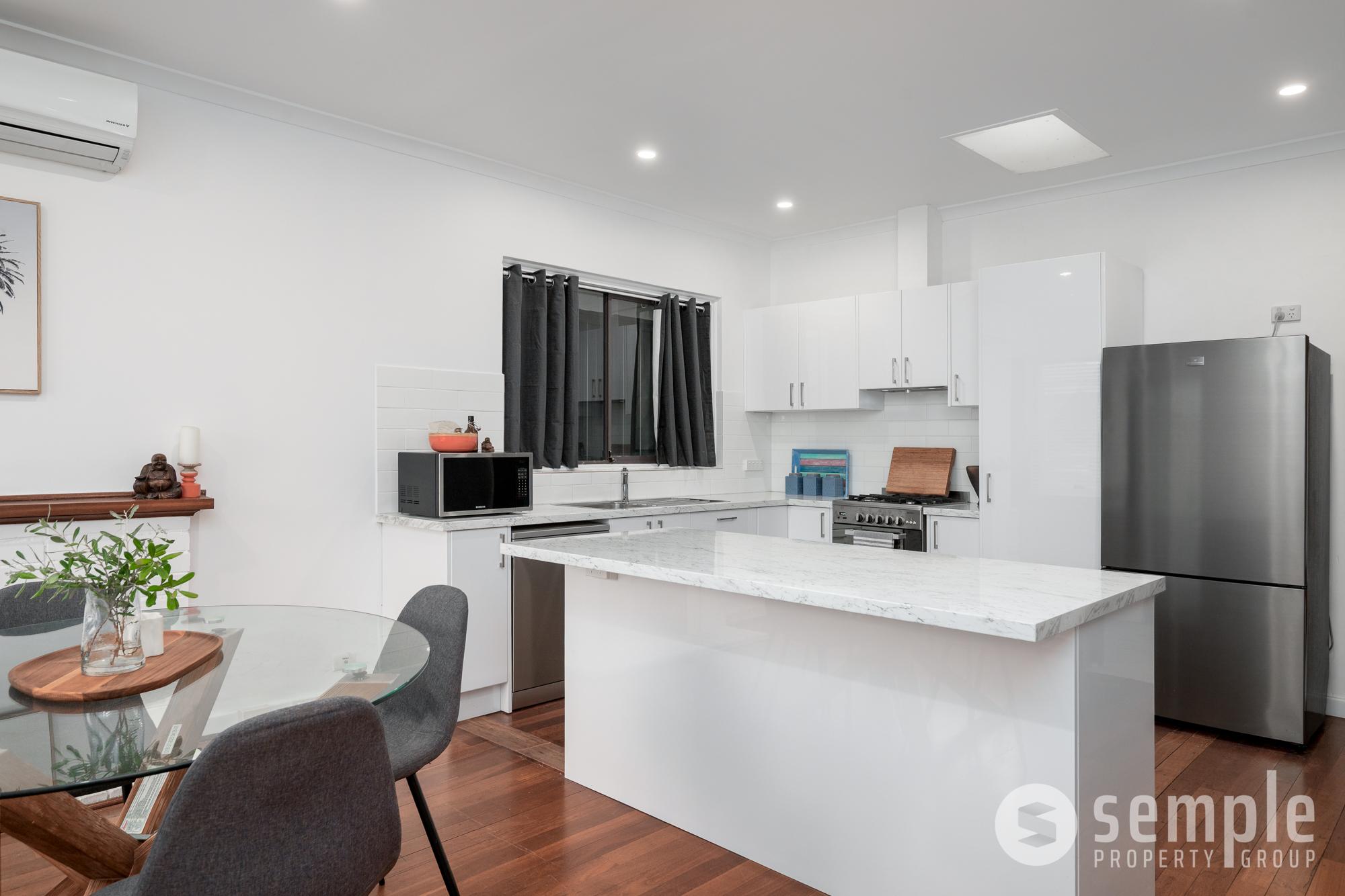 The home features 3 bedrooms, 2 bathrooms, and 1 toilet. At the heart of the home, the modern kitchen has been renovated and boasts a pantry, dishwasher and breakfast bar. It flows easily into the dining area and a separate extended living room, ideal for everyday living and entertaining guests.