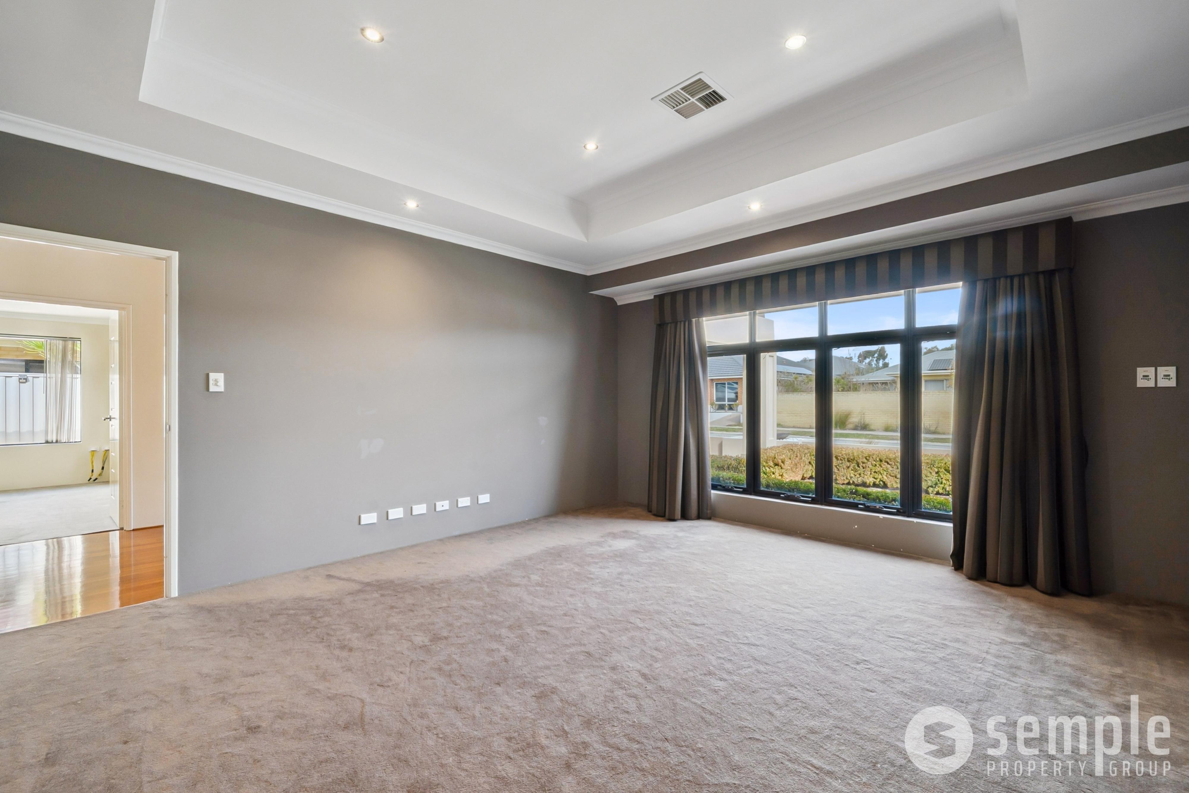 • Theatre with raised ceiling with dimmable downlights for ambiance. Block out blinds ideal for a full cinema experience.