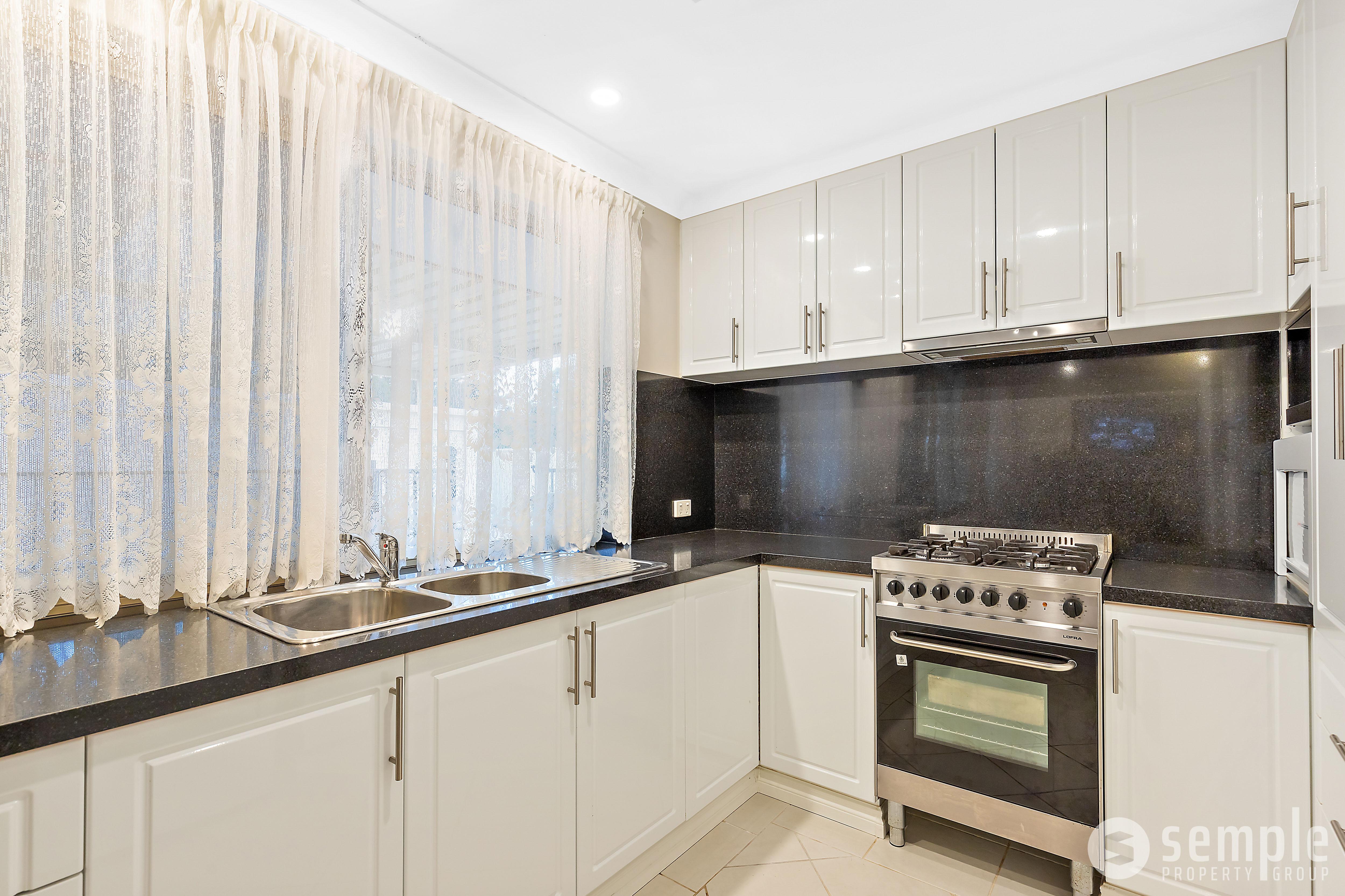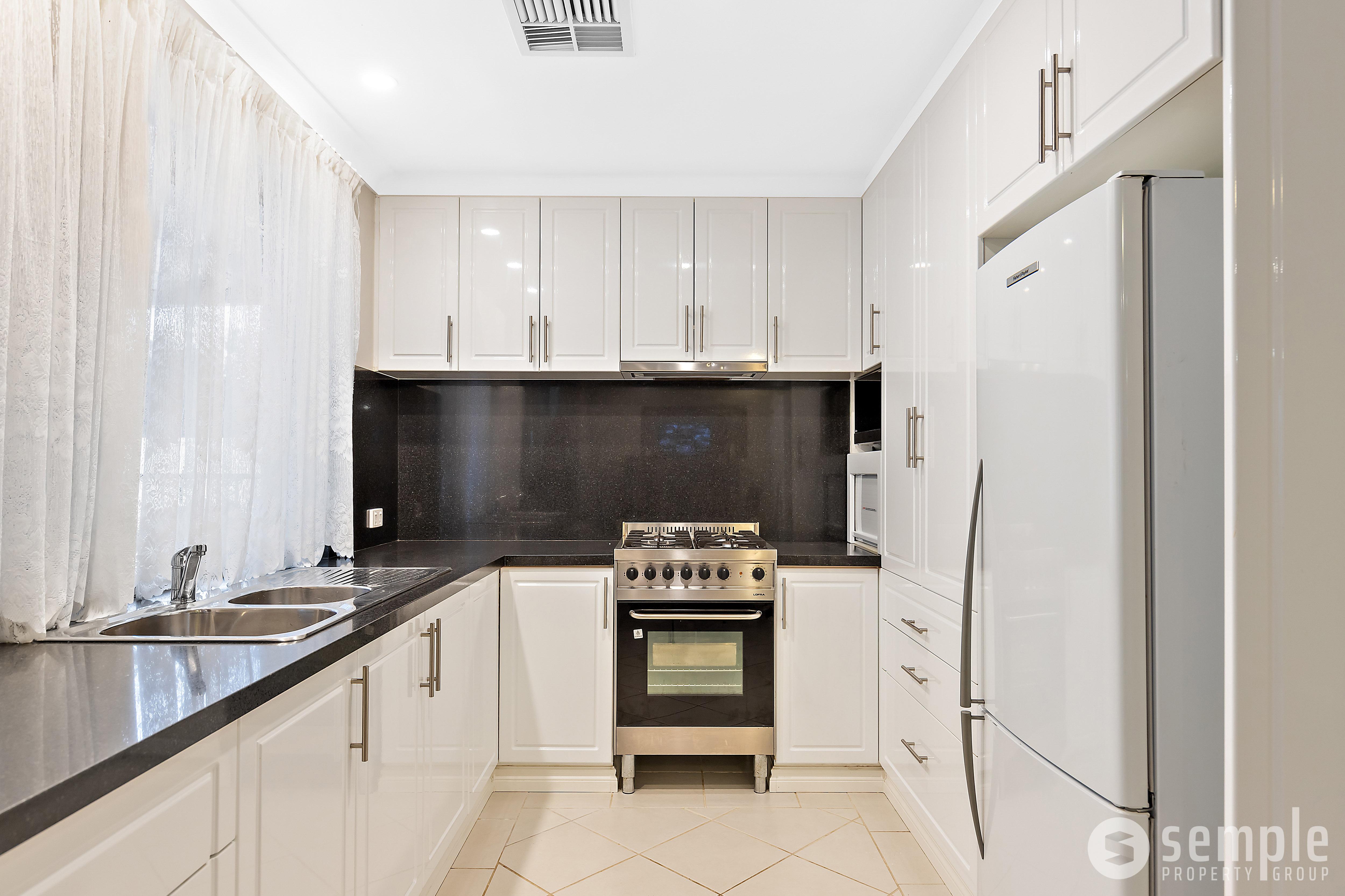 • Renovated kitchen overlooking the lush backyard, complete with freestanding oven, gas cooktop, large fridge recess, pantry and loads of overhead storage