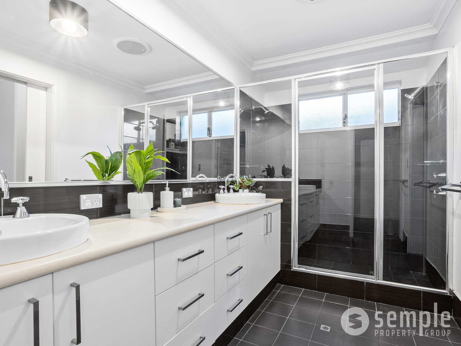 • Ensuite bathroom with separate toilet, double vanity and large glass frameless shower