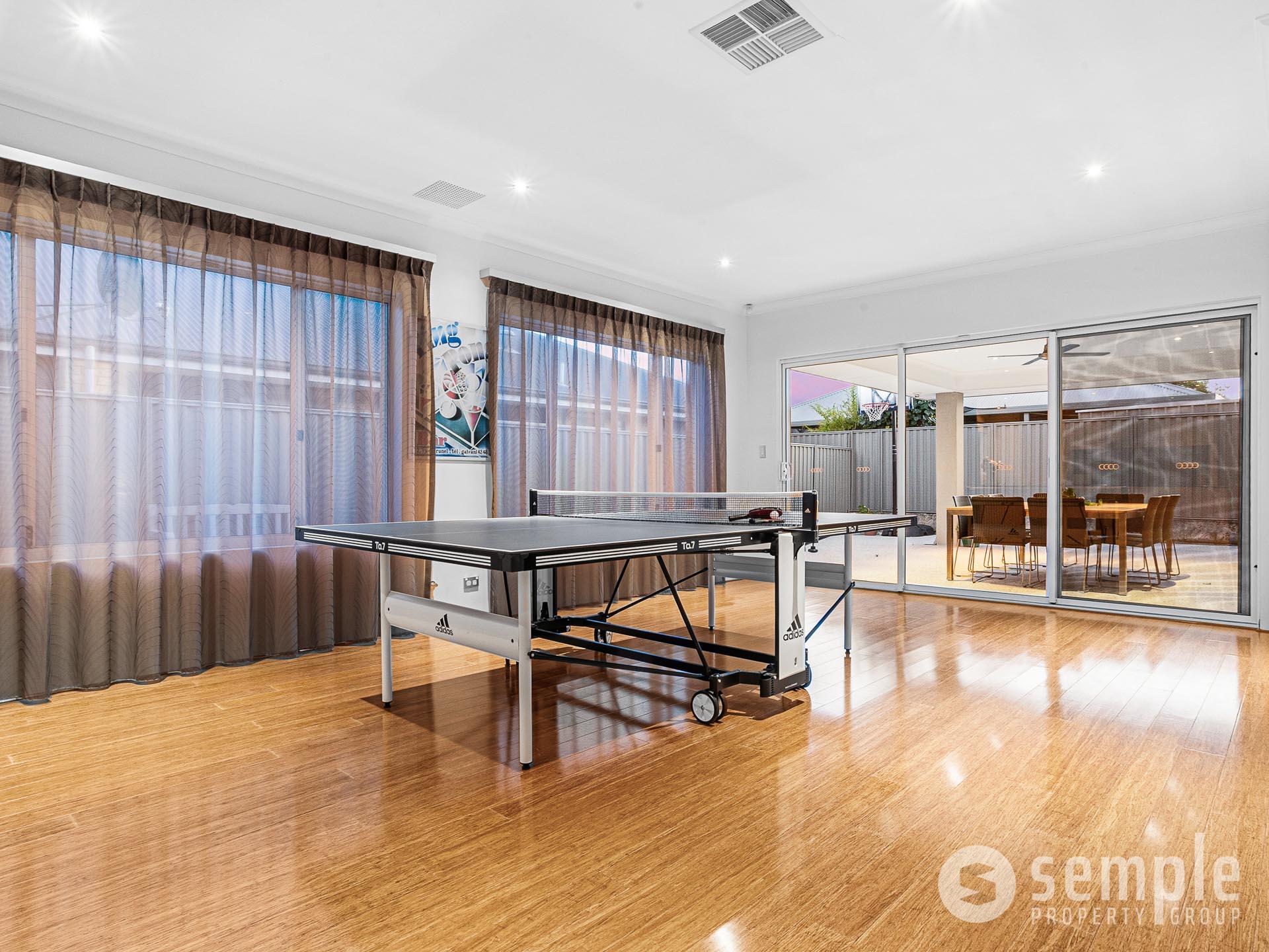• Open plan family, meals and games rooms with 31c high ceilings