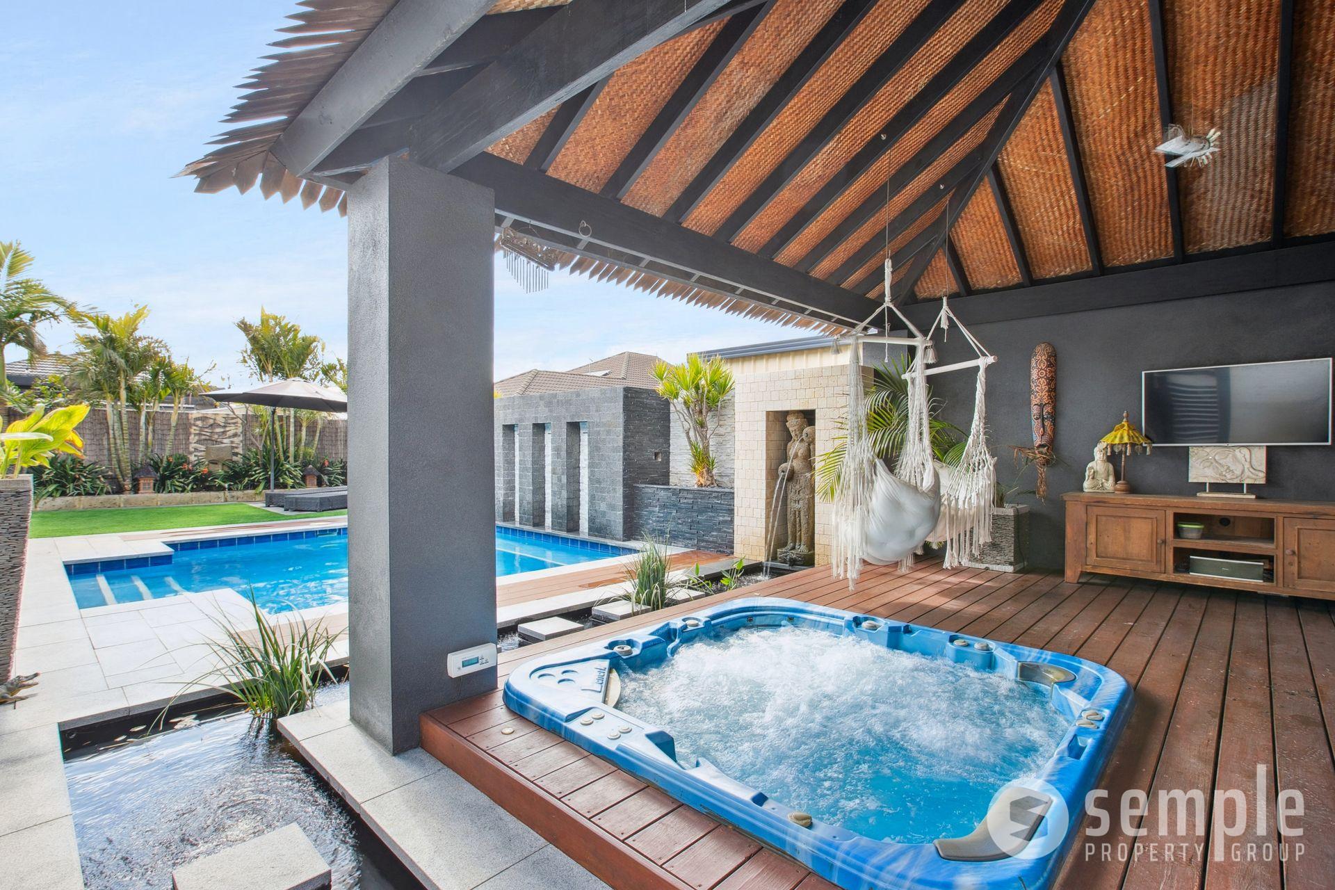 • Bali-style gazebo with heated spa and wraparound koi pond