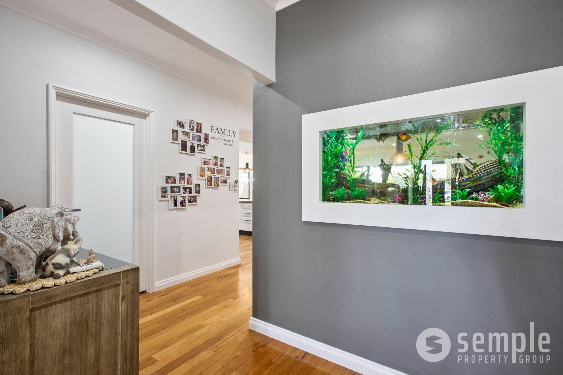 • Built-in fish tank with feature cabinetry