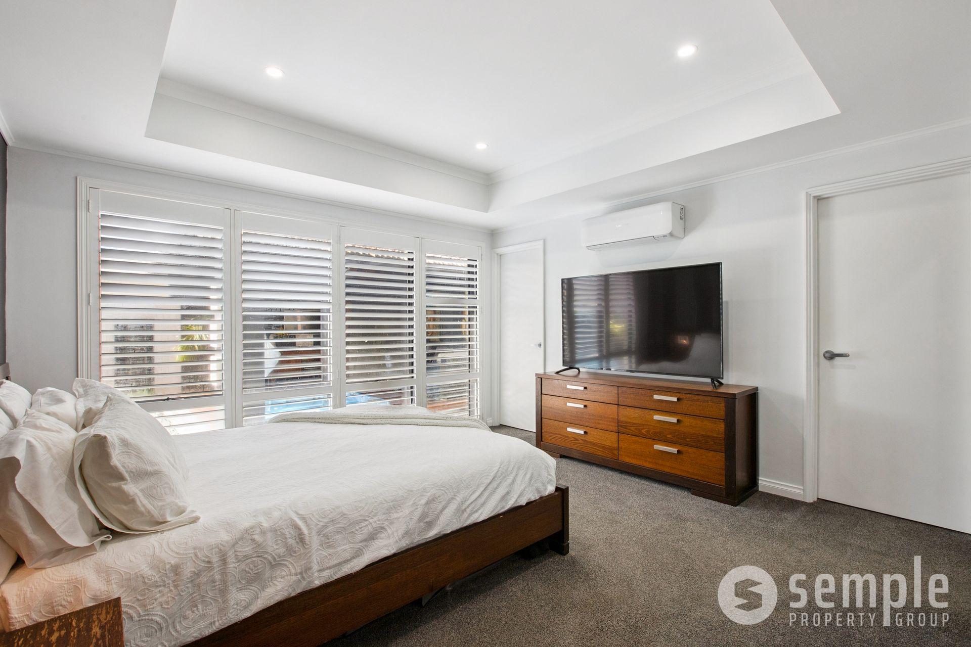• Main bedroom downstairs with his and hers walk-in robes, split system air conditioning, and ensuite with shower, double vanity, and toilet