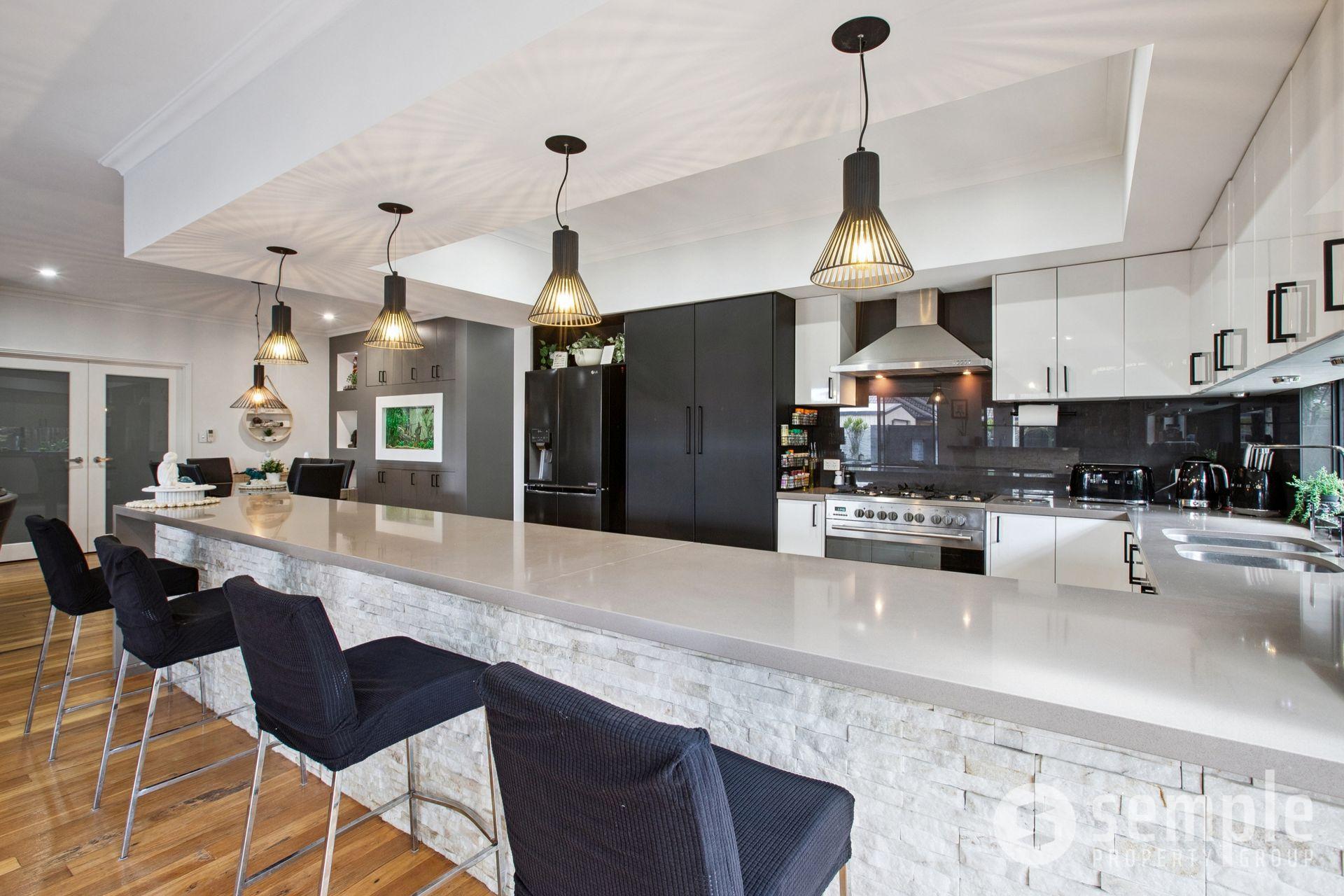 • Built-in bar with feature benchtops and server windows