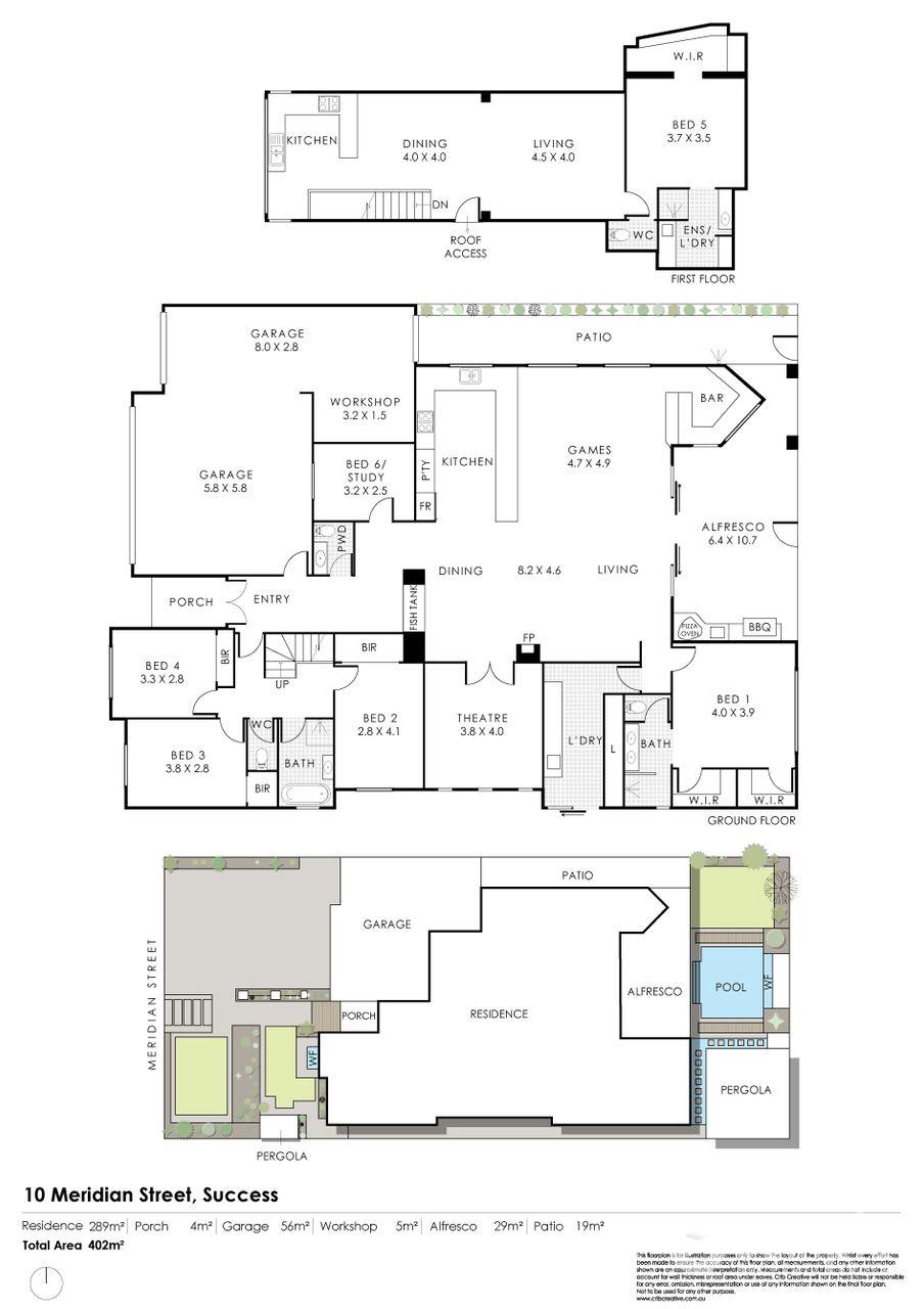 • 3 car garage with high 4wd access – 12m long, 8.5m wide driveway with plenty of room for parking, caravan or boat and designated workshop