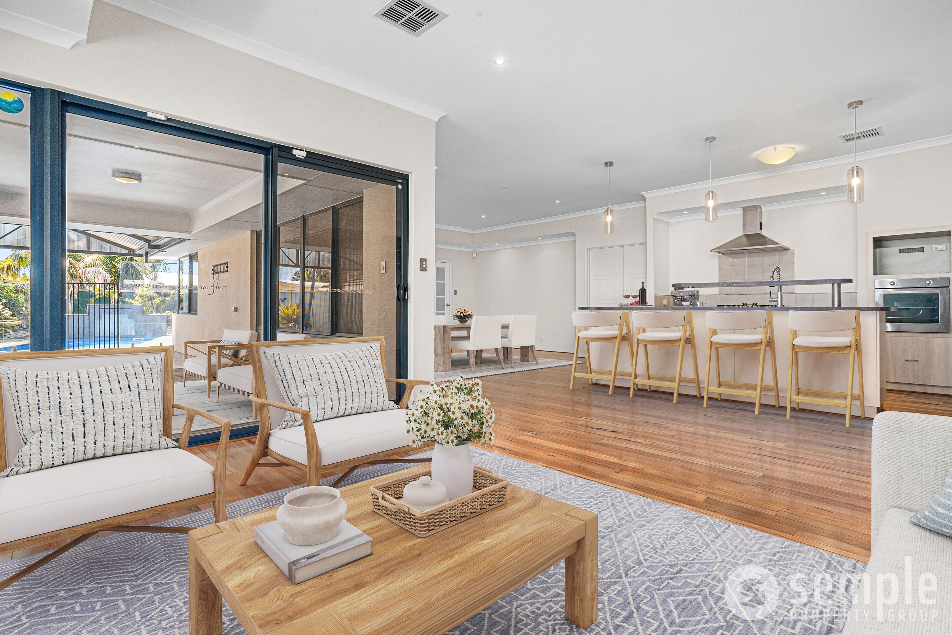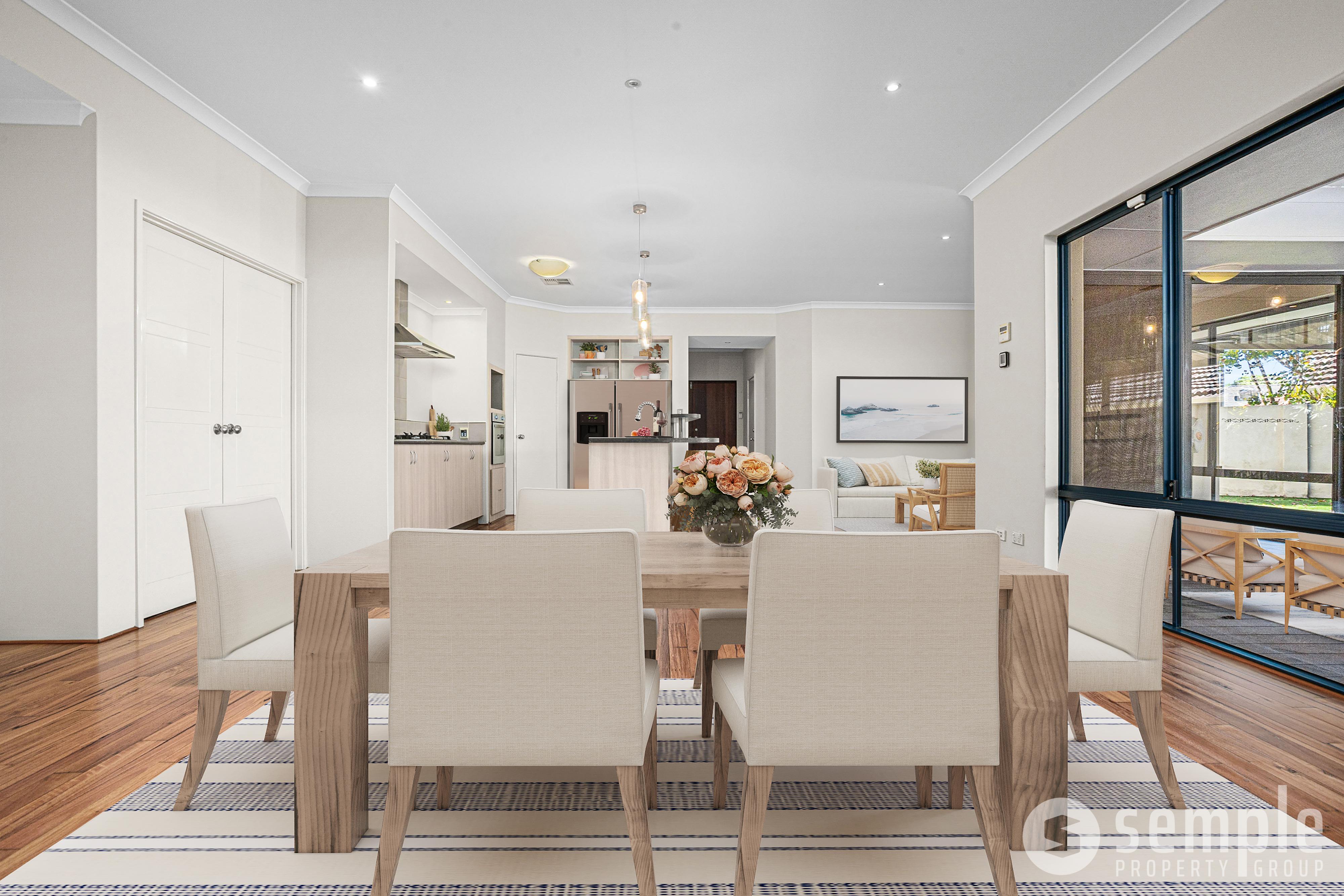 From the moment you step through the entry, you’ll notice the quality fittings and fixtures throughout. High ceilings, repolished solid wood floors, downlights and a thoughtfully designed layout create a sense of space and comfort, while the flowing floorplan ensures there’s room for everyone to live, relax and entertain.