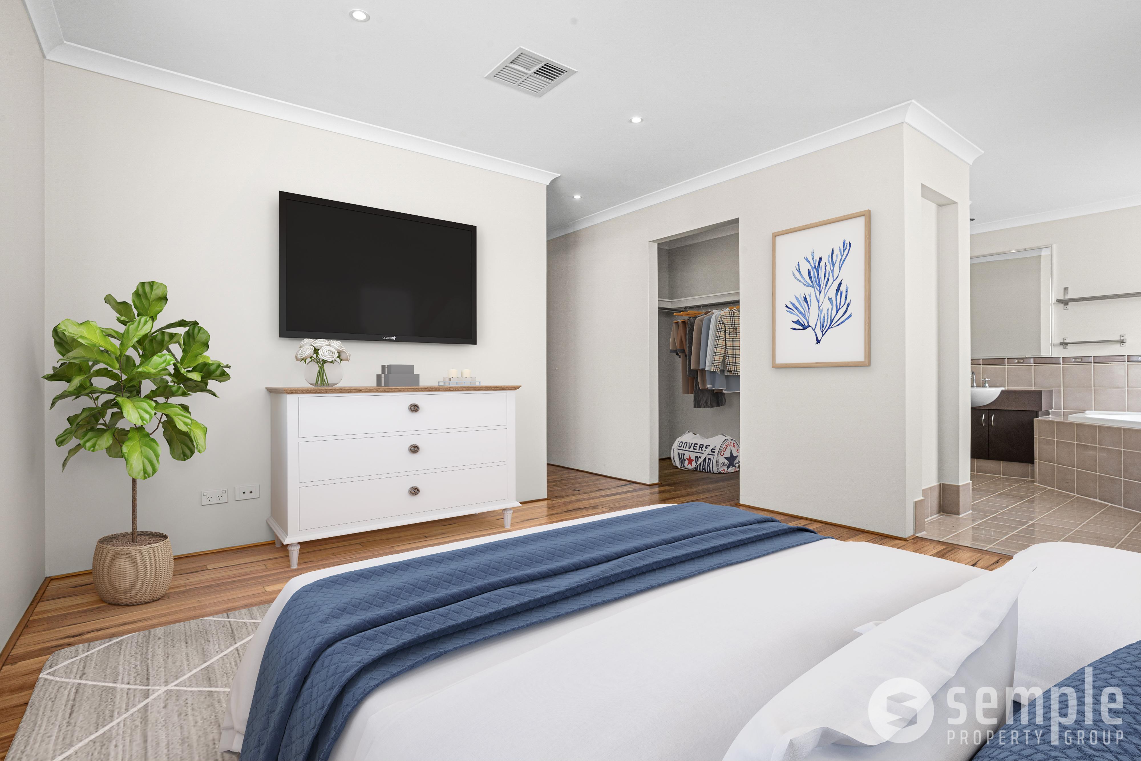 The master suite is privately positioned and complete with a walk-in robe and spacious ensuite featuring double vanity, corner bath and separate shower. The additional three bedrooms are all generously sized with built-in robes and Foxtel outlets, serviced by a well-appointed family bathroom and separate WC – delivering practical comfort for growing families.