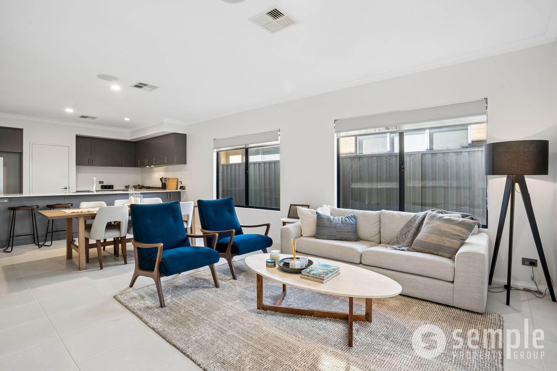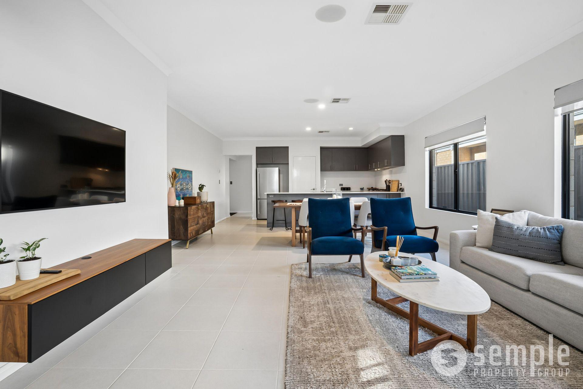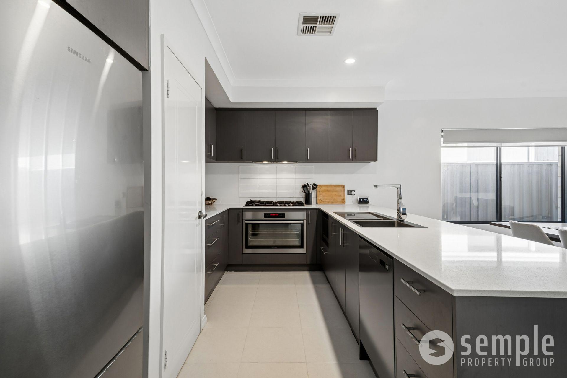 At its heart, the open-plan kitchen, living, and dining area is designed for connection and comfort, flowing seamlessly to the outdoor space. The kitchen is a standout, featuring stone benchtops with a breakfast bar, 900mm appliances, and ample storage, ideal for both everyday use and entertaining.