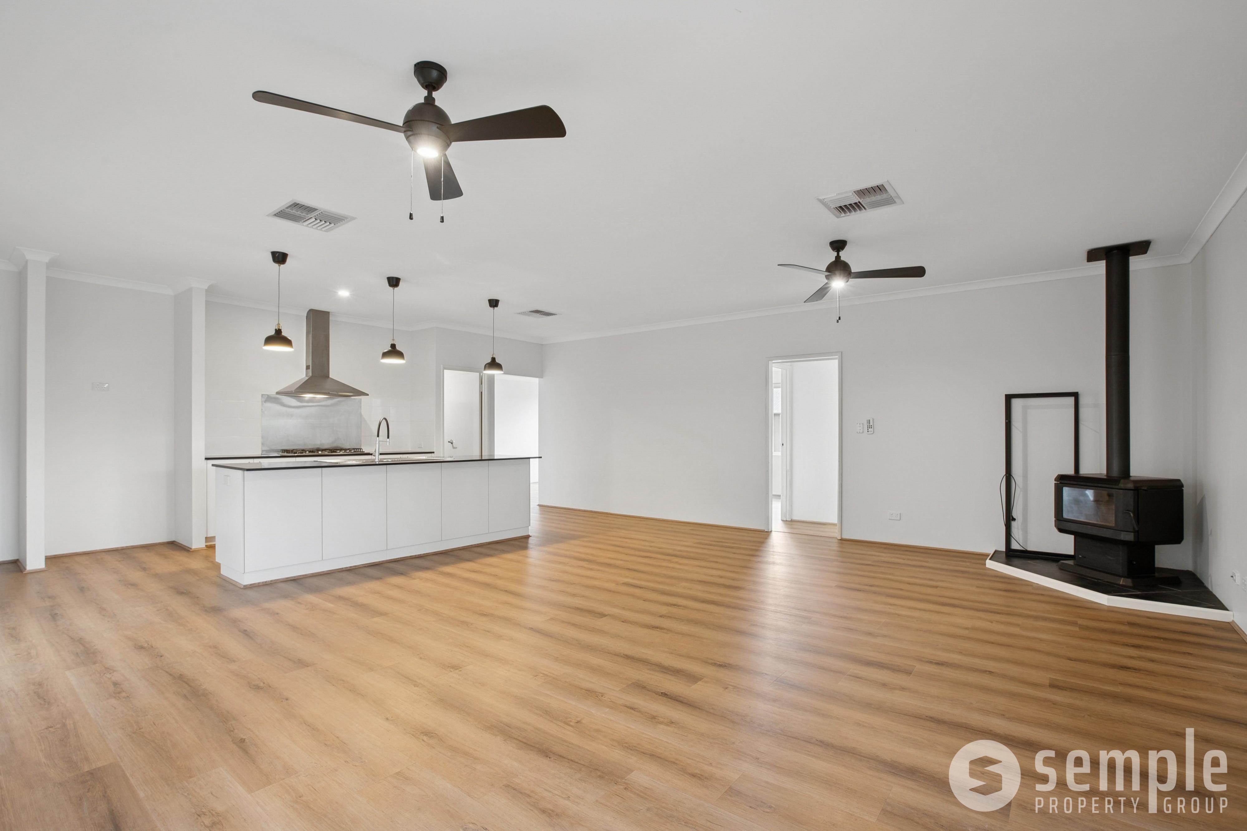 • Open plan living with ceiling fans