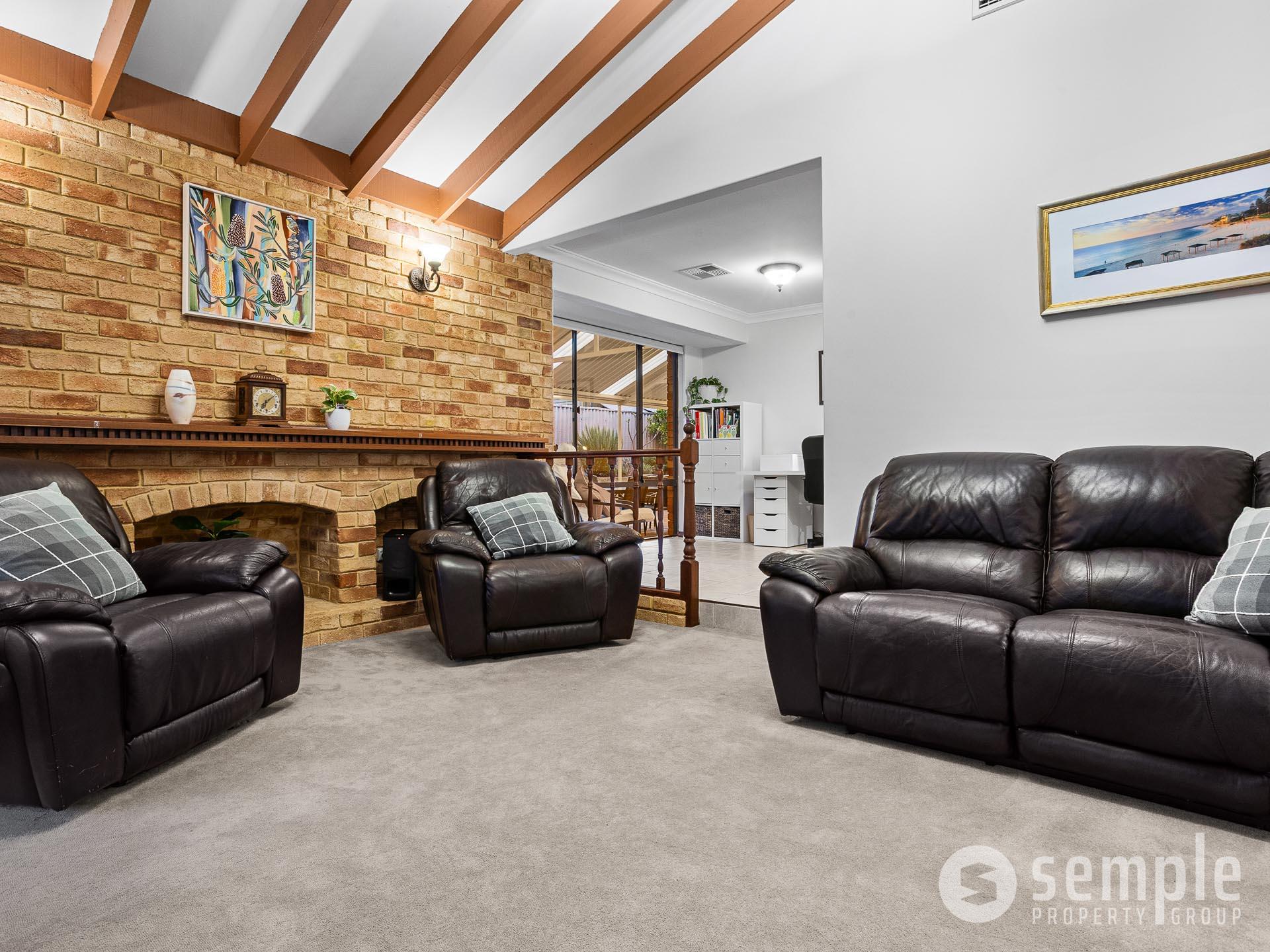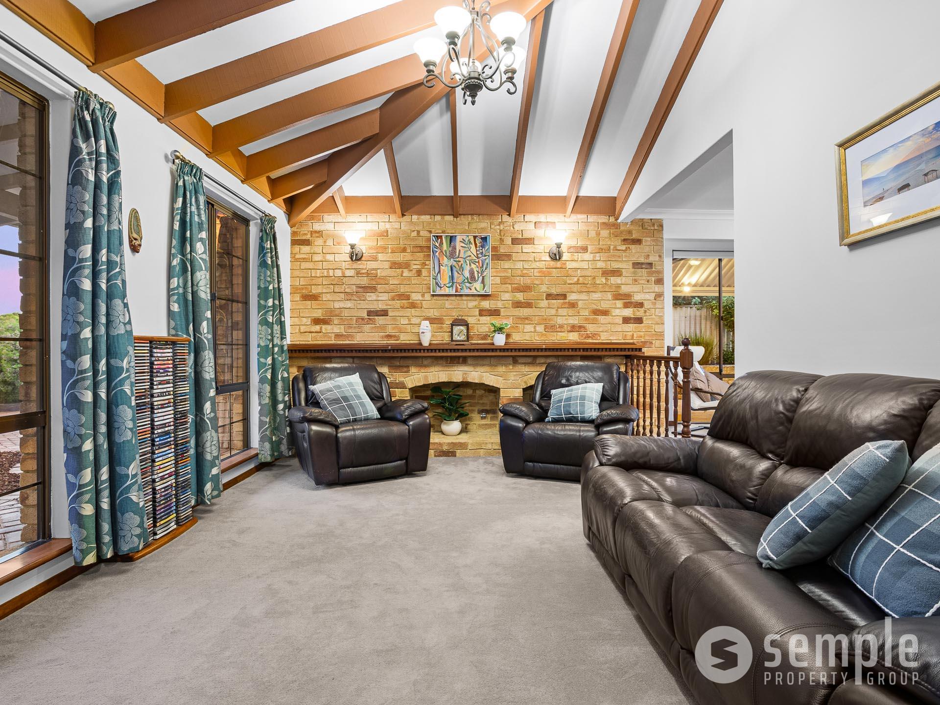 Step inside to a thoughtful layout designed for relaxed family living. A welcoming formal entry leads through to the sunken lounge and dining area, featuring soaring cathedral ceilings and a cosy fireplace that creates an inviting focal point in the cooler months. The renovated kitchen sits at the heart of the home, complete with modern appliances and ample storage, overlooking the meals and family area to ensure everyone stays connected.